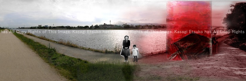 "Mother at 32 and me at 3 at the Muko River in Amagasaki in 1956"